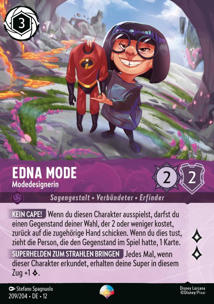 Kein Cape! Wenn du diesen Charakter ausspielst, darfst du einen Gegenstand deiner Wahl, der 2 oder weniger kostet, zurück auf die zugehörige Hand schicken. Wenn du dies tust, zieht die Person, die den Gegenstand im Spiel hatte, 1 Karte.